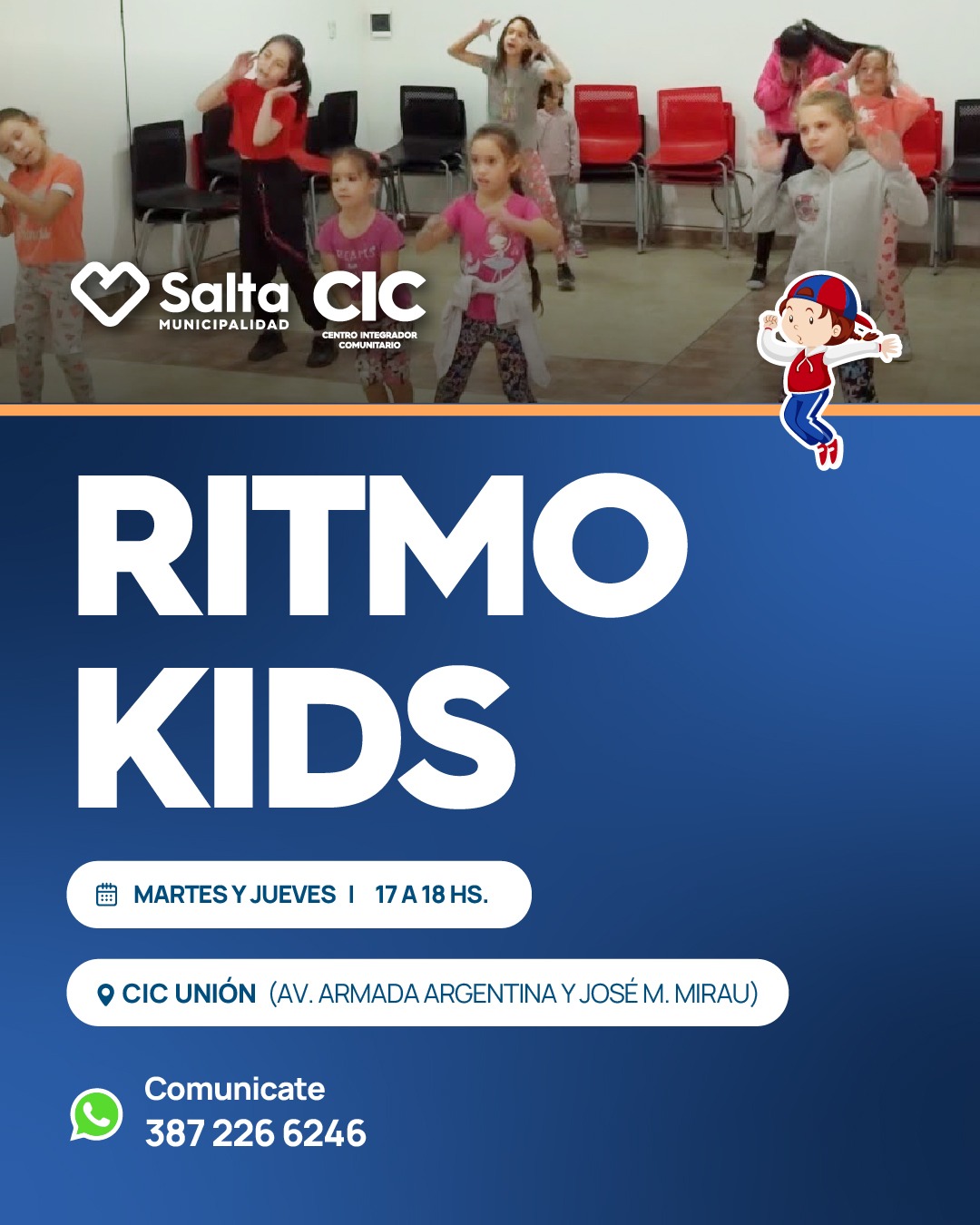 EN EL CIC DE B° UNIÓN TENEMOS RITMO KIDS TODOS LOS MARTES Y JUEVES DE 17 A 18hs.