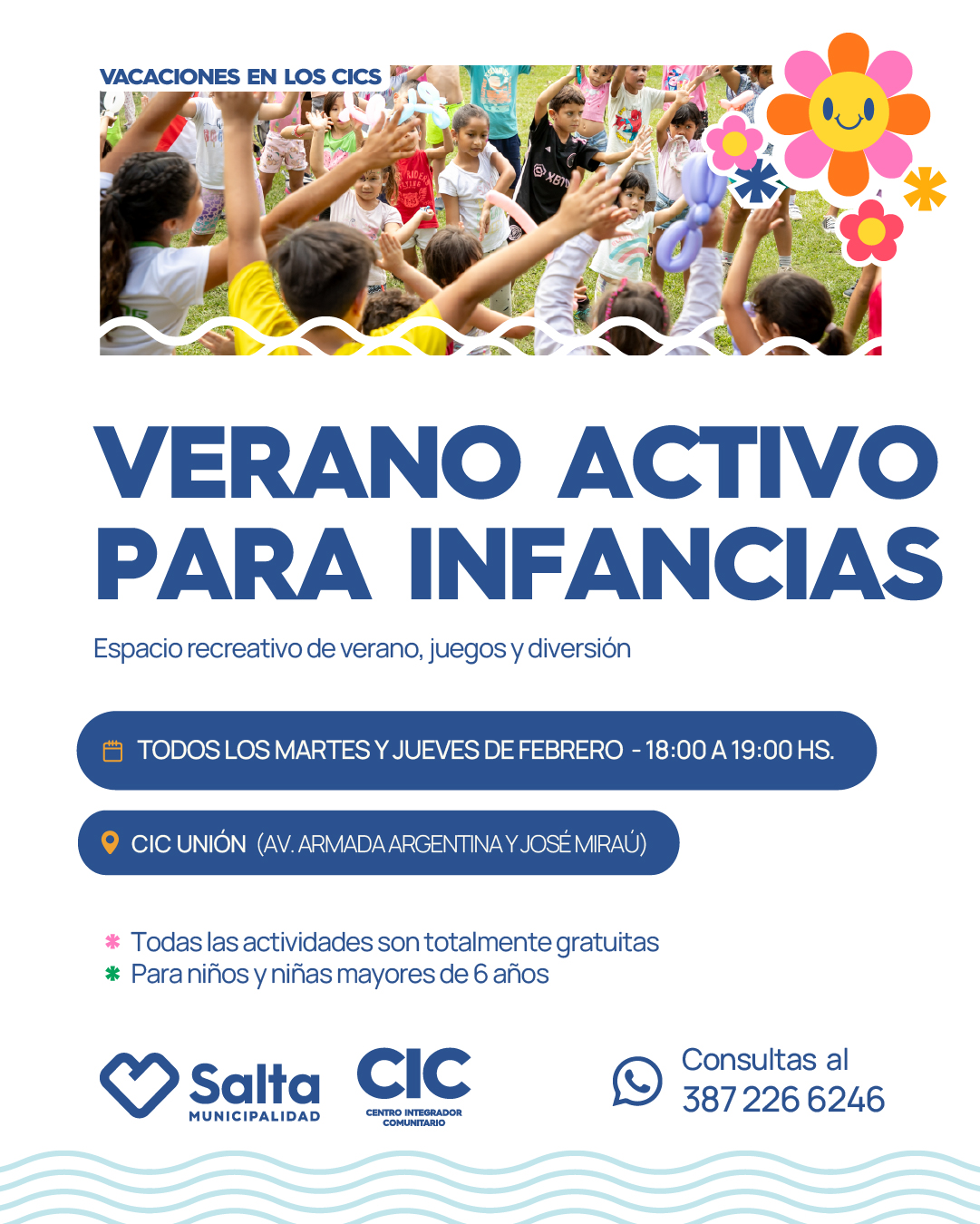 VERANO ACTIVO PARA INFANCIAS TODOS LOS MARTES Y JUEVES DE FEBRERO DE 18 A 19hs.