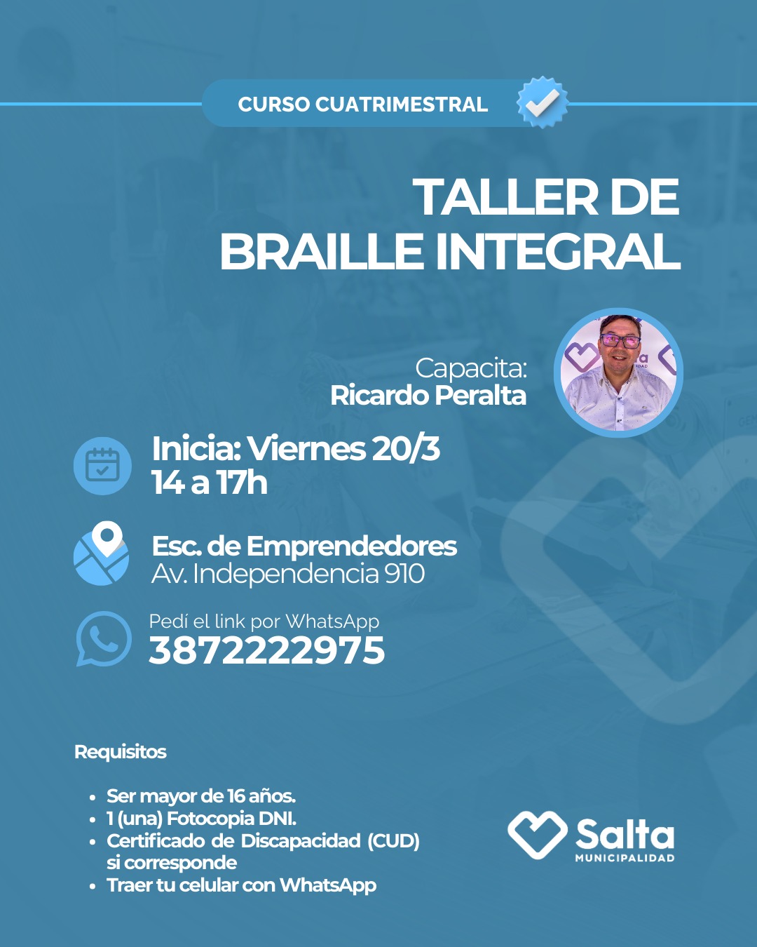 ¡Te esperamos para formar parte de nuestra Escuela de Emprendedores con este curso sobre Taller de braille integral!