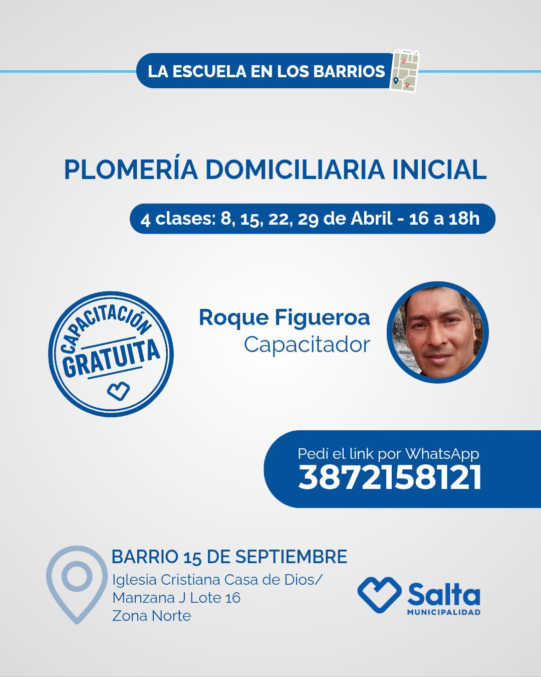 El taller será dado por el capacitador Roque Figueroa con una duración de 4 clases. 💧🚿🚰
