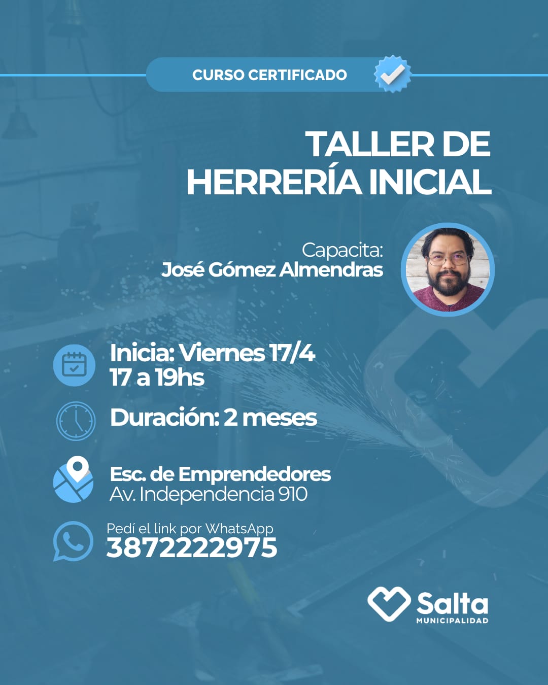 👉 Este taller es ideal para quienes quieren empezar desde cero en el mundo de la herrería. Tendrá una duración de 2 meses, con clases de dos horas de duración y estará a cargo del profesor José Gómez Almendras.
